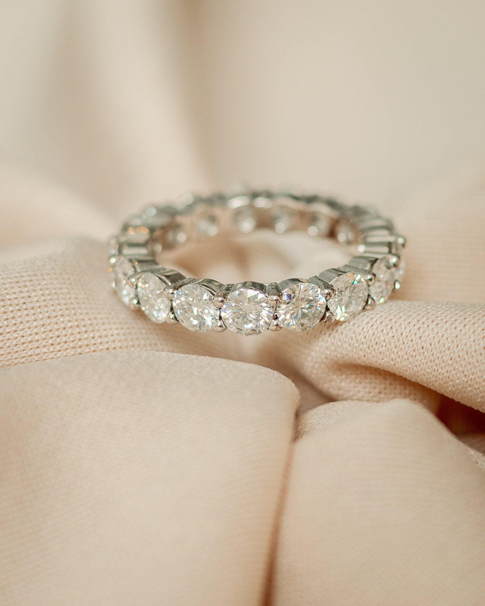 Celebrate eternal elegance with this exquisite moissanite eternity band,