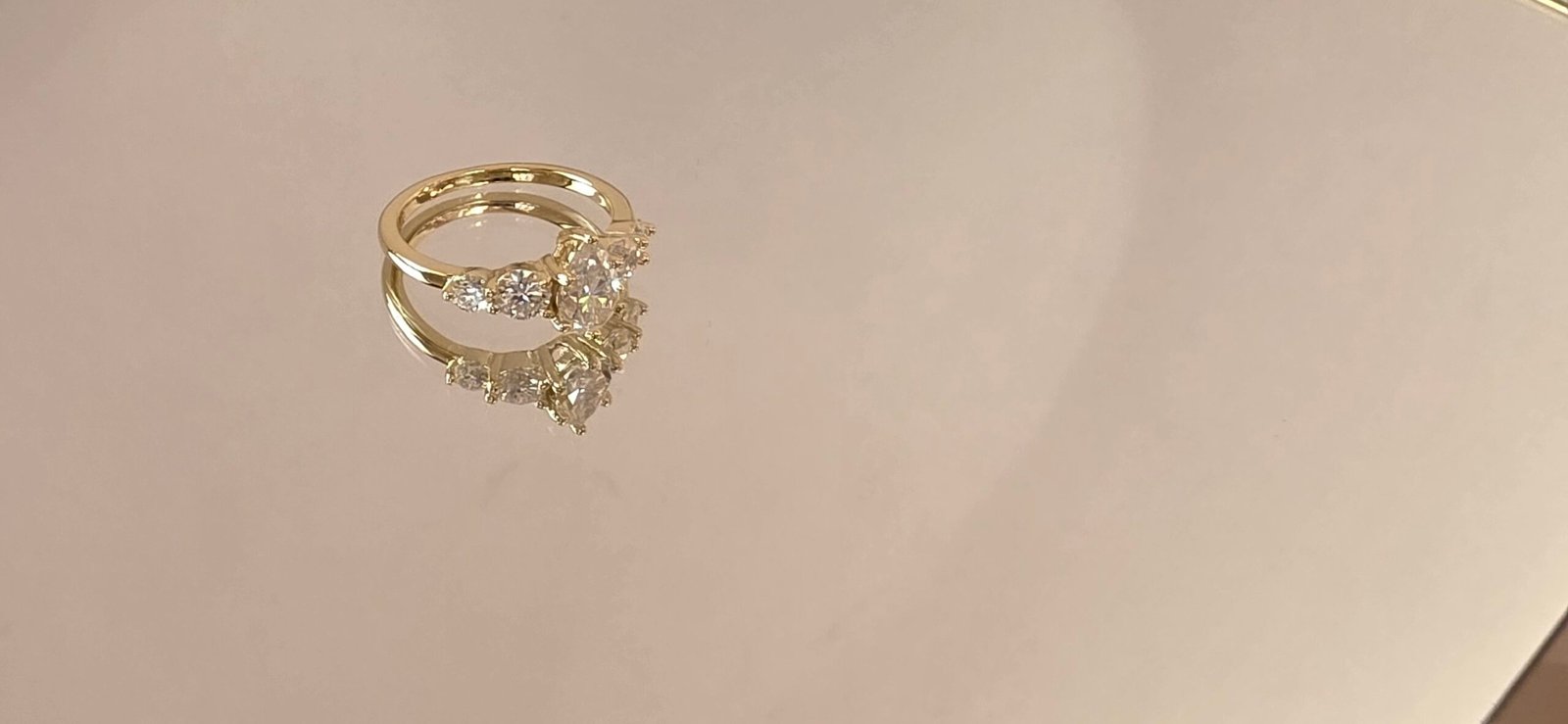 This elegant five-stone moissanite ring highlights balance and refined femininity,