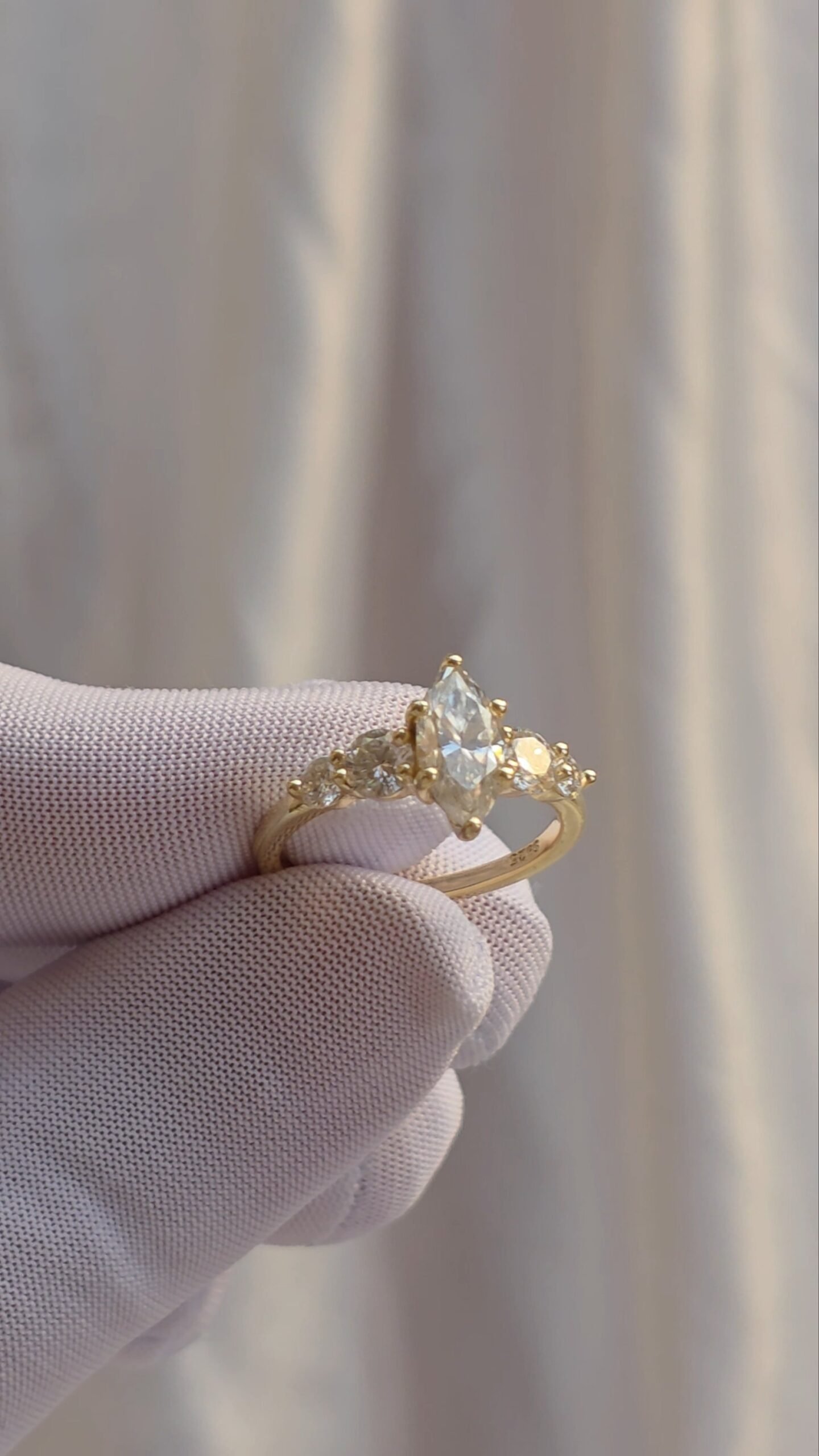 | Stone Shape | Marquise (center) & Round (side stones) |